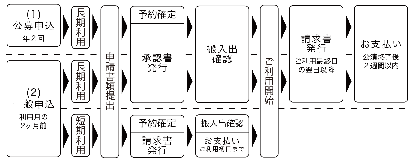 (2)一般申込:公募終了後、利用希望月の2ヶ月前の1日*から随時受付