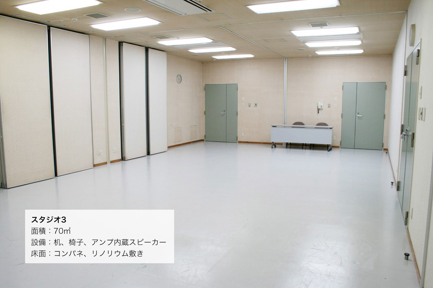 スタジオ3(70㎡) | ¥4,200 | ¥25,200 | ¥100,800 | ¥5,100 | 15人 |